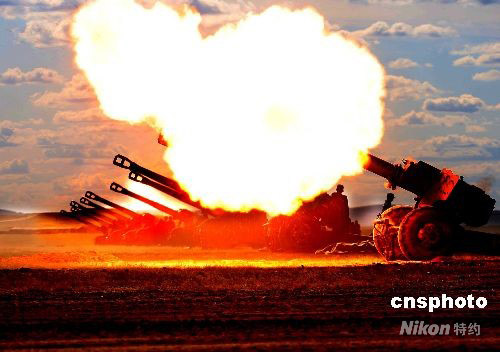 中國人民解放軍濟(jì)南軍區(qū)參加“礪兵--2008”演練的部隊(duì),日前已經(jīng)集結(jié)完畢,部隊(duì)全部進(jìn)入臨戰(zhàn)狀態(tài)。9月12日該軍區(qū)炮兵旅進(jìn)行臨戰(zhàn)前的實(shí)彈訓(xùn)練。中新社發(fā) 宋吉河 攝