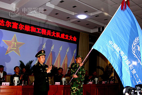 中國軍網(wǎng)12月15日電 特約通訊員畢華明攝影報道:12月13日,濟南軍區(qū)第二批赴蘇丹達(dá)爾富爾維和工程兵大隊成立大會在某裝甲師隆重舉行。根據(jù)聯(lián)合國與我國簽訂的《諒解備忘錄》和《出兵國指南》的有關(guān)規(guī)定,大隊在任務(wù)區(qū)主要擔(dān)負(fù)工程構(gòu)筑和維護戰(zhàn)區(qū)主要道路、橋梁,勘察水源、修建取水設(shè)施以及人道主義援助等任務(wù)。