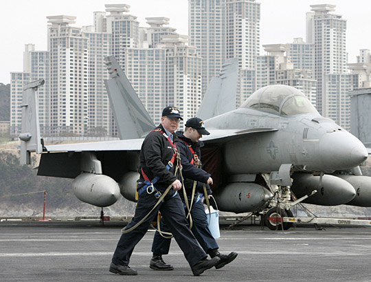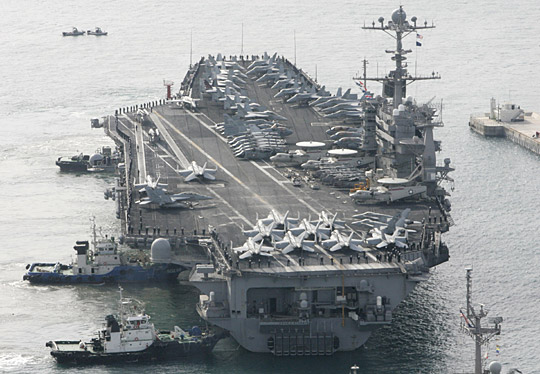 中新網3月11日電 據韓聯社報道,將參加韓美“關鍵決斷”聯合軍演的美國第3艦隊核動力航母“約翰·斯坦尼斯”號(9.6萬噸),11日上午抵達了釜山海軍作戰(zhàn)司令部基地。