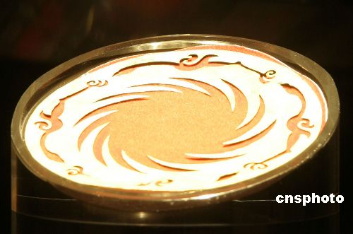 十一月十九日,成都金沙遺址出土的“太陽神鳥”金飾在該遺址博物館展出,在聚光燈下金光閃閃。該金飾已成為金沙遺址博物館鎮(zhèn)館之寶,其圖案也已被確定為中國文化遺產(chǎn)標(biāo)志。中新社發(fā) 孫自法 攝