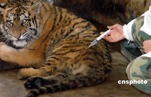 圖:東北虎首次接受貓細(xì)小病毒疫苗試驗(yàn)