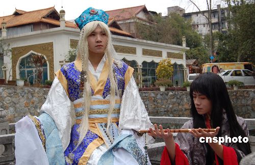 2月12日是農(nóng)歷大年初六,廣西南寧幾名高中學(xué)生在當(dāng)?shù)氐拿褡逦奈镌吠嫫餭osplay(動(dòng)漫真人秀),體驗(yàn)另類春節(jié)的感覺(jué)。據(jù)悉,自一九九七年cosplay傳入中國(guó)以來(lái),迄今全國(guó)有cos經(jīng)驗(yàn)和參加過(guò)cos活動(dòng)的人數(shù)在十萬(wàn)以上。中新社發(fā) 劉萬(wàn)強(qiáng) 攝