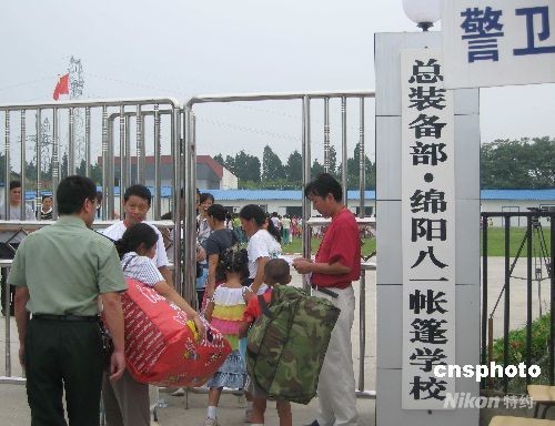 8月20日,在汶川大地震中受損嚴(yán)重的四川省綿陽市1000余所中小學(xué)全部開學(xué),其中板房學(xué)校有612所。圖為北川學(xué)生進(jìn)入由總裝備部出資修建的綿陽八一帳蓬學(xué)校。據(jù)介紹,該學(xué)校將接納北川羌族自治縣曲山小學(xué)和劉漢希望小學(xué)的九百余名學(xué)生。中新社發(fā) 霍潺 攝