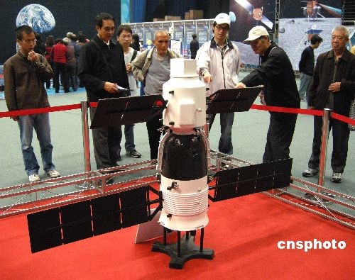 10月20日,嫦娥探月工程暨神舟七號科普展在北京航空航天大學(xué)舉行。參觀者可以體驗穿著高仿真的宇航服拍照,同時還可觀看神七返回艙模型、嫦娥一號衛(wèi)星模型,月球稱等展品。展覽集合了探月工程和神七載人航天工程的部分實物和大量模型圖片等,吸引了眾多京城市民前來觀看。 中新社發(fā) 玉龍 攝