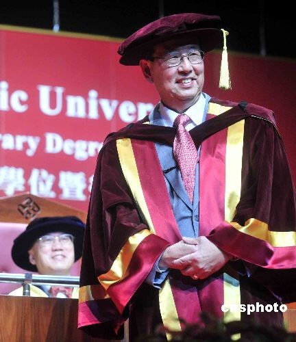 香港金利來集團(tuán)董事會(huì)主席、前全國(guó)人大常委曾憲梓,十月二十三日,獲香港理工大學(xué)頒授榮譽(yù)社會(huì)科學(xué)博士學(xué)位。中新社發(fā) 譚達(dá)明 攝