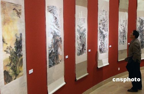 紀(jì)念國畫大師陸儼少誕辰100周年藝術(shù)展在北京開幕。10月31日,為紀(jì)念中國已故國畫大師陸儼少先生誕辰100周年,緬懷這位藝術(shù)大師,展示大師的藝術(shù)成就,由浙江省人民政府、中國文學(xué)藝術(shù)界聯(lián)合會(huì)主辦的“陸儼少先生誕辰100周年藝術(shù)展暨《陸儼少全集》首發(fā)式”,歷經(jīng)上海、南京巡回展覽后,在北京中國美術(shù)館開幕。中新社發(fā) 錢興強(qiáng) 攝