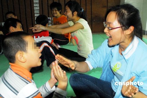 2009年4月2日是第2個世界自閉癥日,海南省海口市各家特教培訓(xùn)機構(gòu)紛紛開展家長聯(lián)誼、趣味游戲等活動,讓親情和訓(xùn)練相結(jié)合敲開自閉癥孩子的“心門”。自閉癥也稱孤獨癥,是以嚴重孤獨、缺乏情感反應(yīng)、語言發(fā)育障礙、刻板重復(fù)動作和對環(huán)境的奇怪反應(yīng)為特征的精神疾病。據(jù)統(tǒng)計,目前中國約有各類自閉癥患者150萬人,其中兒童約有50萬人左右。中新社發(fā) 善平 攝