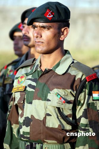 圖為參加訓練的印度士兵。