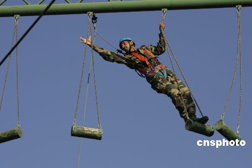圖為印軍士兵通過蕩繩。
