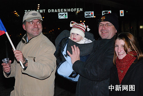 一個(gè)家住布爾諾市的捷克家庭特意驅(qū)車60公里在12月20日午夜來到捷奧邊境奧地利一側(cè)德拉申霍芬海關(guān),在零下5度的嚴(yán)寒中暢飲燙熱的紅葡萄酒,慶祝取消邊境檢查。