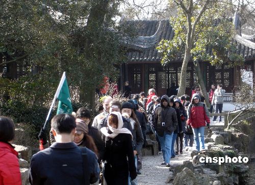 12月30日,游客在蘇州古典園林拙政園游覽。當日是2008年元旦“小長假”第一天,盡管蘇州天氣寒冷,但姑蘇園林內人氣依然火爆。中新社發(fā) 王建康 攝