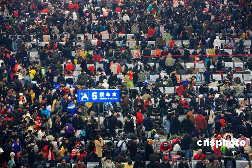1月27日,湖北武昌火車站候車室內(nèi)擠滿了等待乘車的旅客。當(dāng)日,受雨雪天氣影響,廣鐵集團(tuán)湖南境內(nèi)京廣線供電接觸網(wǎng)多處斷電,電力機(jī)車無法通行,致使旅客列車出現(xiàn)多列晚點(diǎn)。武昌火車站采取措施,在新落成的候車室內(nèi)開通暖氣,確保滯留旅客不受凍。中新社發(fā) 宋建春 攝