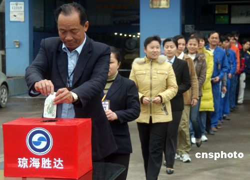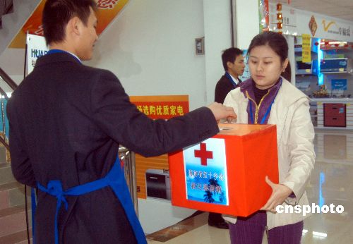 2008年2月5日,瓊海市民在踴躍捐款救災。我國南方部分地區(qū)遭受雪災牽動全國人民的心,在海南省紅十會倡議組織下,連日來海南各界群眾積極捐款捐物,向災區(qū)人民獻愛心。中新社發(fā) 蒙鐘德 攝