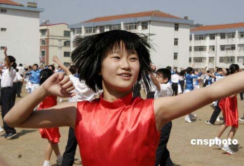 圖:山東威海舉辦迎奧運校園集體舞大賽(5)