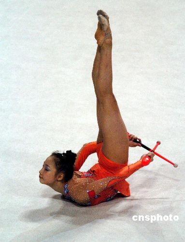 2008年4月6日,全國藝術(shù)體操冠軍賽在深圳體育館進(jìn)入第三天。由于這是北京奧運(yùn)前最后一次全國選拔積分賽,因此吸引了來自全國17支隊(duì)伍的精英參賽。深圳名將李紅楊在成年組個(gè)人全能比賽中獲得金牌。中新社發(fā) 吳峻 攝
