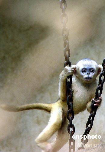 鄭州動(dòng)物園的一只剛滿月的猴仔“美美”同游客見面,由于今年是奧運(yùn)年,工作人員稱之為“奧運(yùn)猴寶寶”。 李志全 攝
