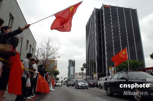 當(dāng)?shù)貢r(shí)間4月19日,洛杉磯爆發(fā)十幾年來(lái)最大規(guī)模的華人華僑抗議示威活動(dòng)。數(shù)千名華人華僑和留學(xué)生在CNN洛杉磯分部門前參加和平示威,要求CNN向公開鄭重道歉,并開除卡弗蒂。一些學(xué)生和僑民乘坐汽車在日落大道上來(lái)回穿梭,他們揮舞著五星紅旗和抗議標(biāo)語(yǔ)牌與兩側(cè)人行道的抗議人群相互呼應(yīng)。 中新社發(fā) 張煒 攝