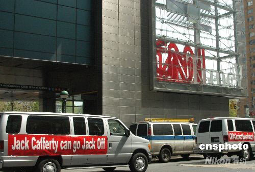 紐約華人社團(tuán)二十一日租用多輛巴士,懸掛抗議CNN口號(hào)的標(biāo)語,圍繞美國有限電視新聞網(wǎng)(CNN)駐紐約辦公大樓周圍行駛,強(qiáng)烈抗議CNN辱華報(bào)道。中新社發(fā) 李靜 攝
