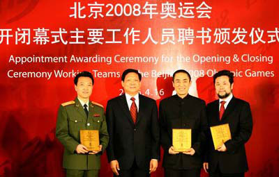 2006年4月16日上午,北京奧組委向第29屆奧運(yùn)會(huì)開閉幕式第一批主要工作人員頒發(fā)聘書,張藝謀任總導(dǎo)演,張繼鋼、陳維亞任副總導(dǎo)演。