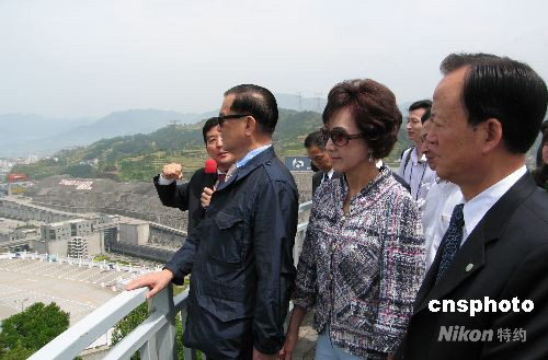 五月四日,中國國民黨榮譽(yù)主席連戰(zhàn)偕夫人連方瑀,參觀訪問三峽大壩,并欣然為三峽工程題詞:“造奇工,利天下。”連戰(zhàn)對三峽工程發(fā)揮的巨大效益表示欽佩,稱贊三峽工程是中華兒女共同的榮耀。中國國民黨副主席林豐正、海協(xié)常務(wù)副會長李炳才以及湖北省、宜昌市等當(dāng)?shù)赜嘘P(guān)人員陪同參觀訪問。中新社發(fā) 艾啟平 攝