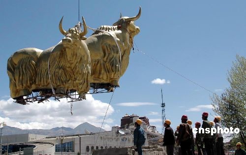 圖:拉薩市標(biāo)銅雕“牦!卑峒