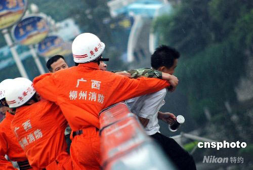 圖:廣西柳州消防戰(zhàn)士智救輕生男子