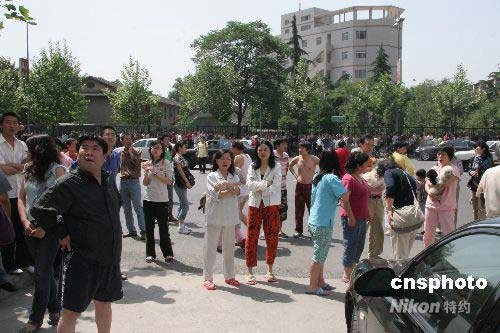 西安發(fā)生強有感地震,部分市民沖出辦公和居住場所躲避。中新社發(fā) 王振001 攝