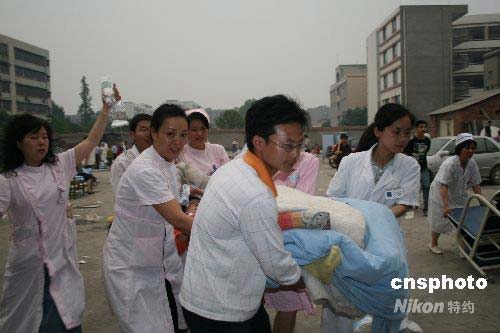 圖:四川眉山醫(yī)務(wù)人員投入避震救災(zāi)工作