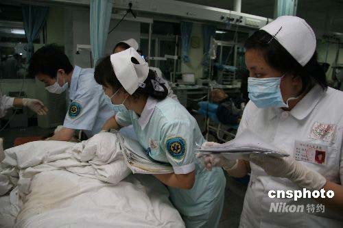 圖:醫(yī)務(wù)工作者救助來(lái)自都江堰地震傷員(5)