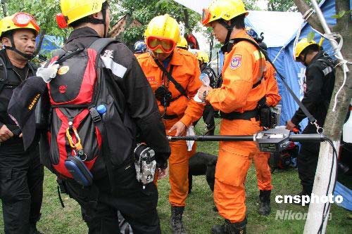 臺灣地震救援隊進入四川重災區(qū)救援 來自臺灣的紅十字救援隊,十七日進入四川綿竹市漢旺鎮(zhèn)展開搜救工作。中新社發(fā) 齊彬 攝