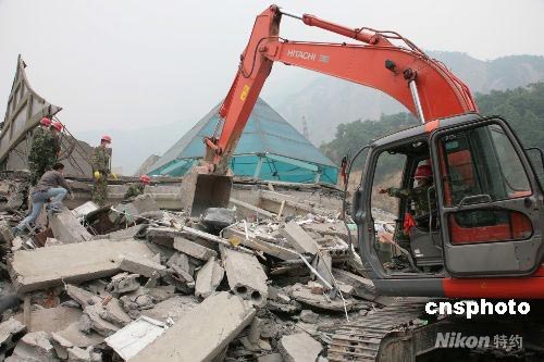 四川北川大型機(jī)械挖掘國(guó)家金庫(kù)庫(kù)款。中新社發(fā) 陳雙維 攝