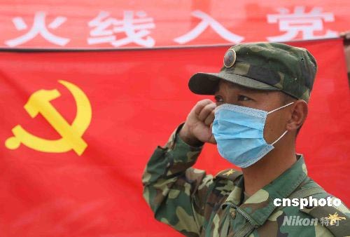 救災(zāi)解放軍士兵火線加入中國(guó)共產(chǎn)黨