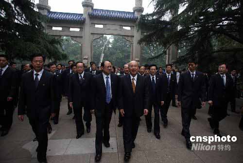 5月27日,中國(guó)國(guó)民黨主席吳伯雄率領(lǐng)的大陸訪問(wèn)團(tuán)拜謁中山陵。他將率團(tuán)在南京、北京、上海三地展開(kāi)6天的大陸訪問(wèn)行程。中新社發(fā) 盛佳鵬 攝