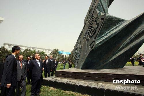 圖:吳伯雄參觀臺灣藝術(shù)家雕塑作品"水袖"