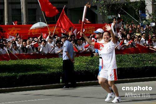 圖:奧運(yùn)火炬在安徽淮南傳遞