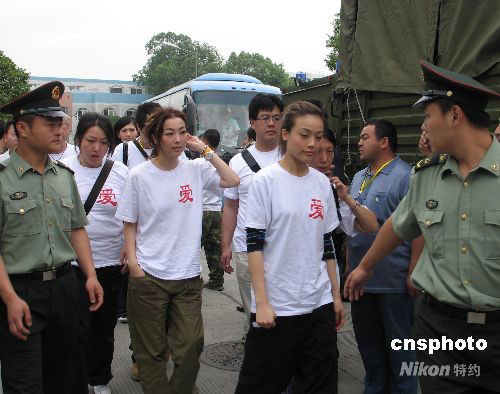 圖:“明星慰問團”成員鄭秀文、容祖兒