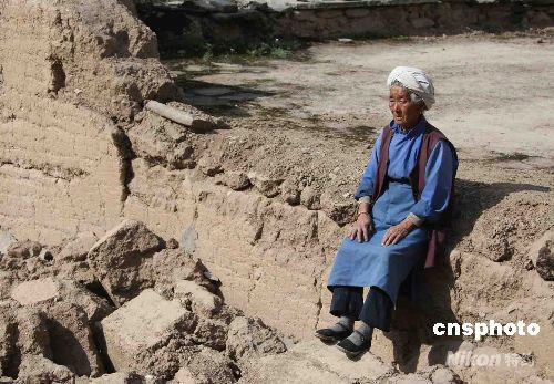 6月2日,四川汶川縣威州鎮(zhèn)布瓦村一名羌族老人靜靜地坐在倒塌的房屋前。中新社發(fā) 曾憲平 攝