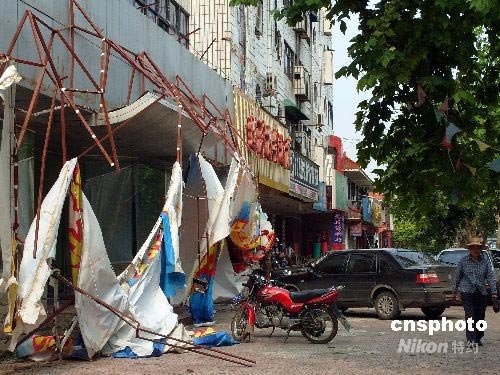 枝江城區(qū)遭受風災,部分電線桿被刮倒,枝江全城停電。中新社發(fā) 劉君鳳 攝