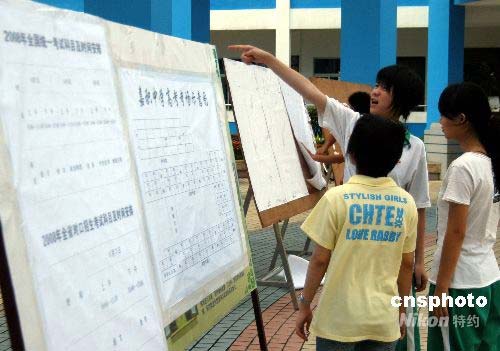 6月6日,海南瓊海,幾位考生在查看考場位置。中新社發(fā) 蒙鐘德 攝
