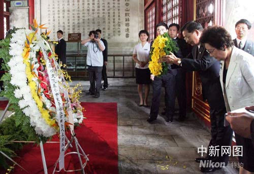 6月12日上午,海峽交流基金會(huì)董事長(zhǎng)江丙坤來(lái)到北京香山碧云寺,拜謁孫中山先生衣冠冢,并參觀孫中山紀(jì)念堂。中新社記者 張宇 攝
