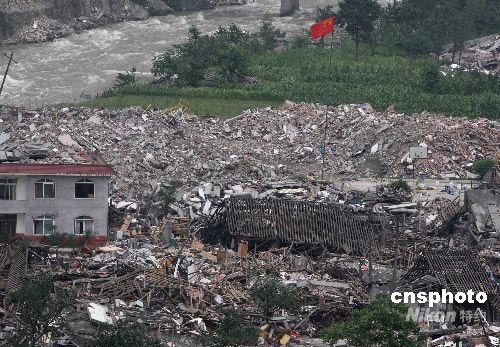 四川汶川大地震嚴重毀壞映秀鎮(zhèn),將映秀鎮(zhèn)小學幾乎全部摧毀為廢墟。中新社發(fā) 賈國榮 攝