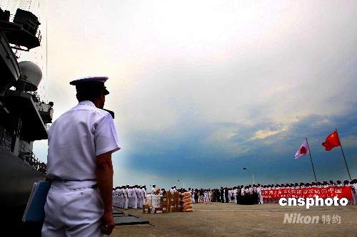 中國人民解放軍海軍官兵歡迎日本"漣"號(hào)艦艇訪華