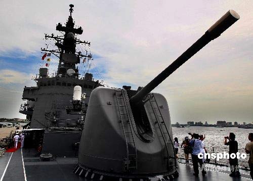 日本艦艇“漣”號到達湛江軍港后,中日記者應邀到“漣”號上參觀采訪。中新社發(fā) 宋吉河 攝