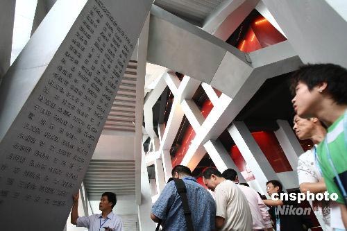 6月28日,北京奧運(yùn)會(huì)主體育場——國家體育場(“鳥巢”)正式落成,建設(shè)者的名字被刻在國家體育場落成紀(jì)念柱的背面。中新社發(fā) 盛佳鵬 攝