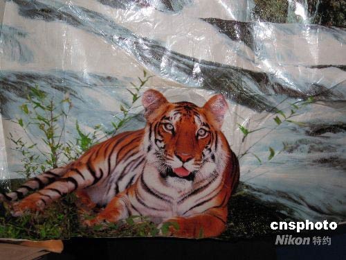 圖為周正龍造假拍攝野生華南虎所用的年畫。中新社發(fā) 趙景榮 攝