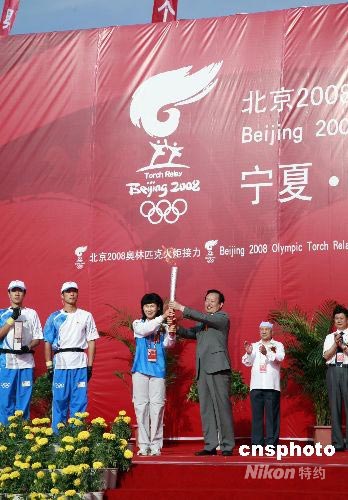圖:奧運(yùn)火炬在寧夏中衛(wèi)市傳遞