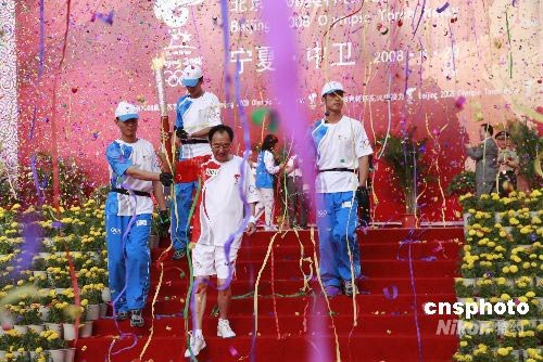 中衛(wèi)市是奧運(yùn)火炬在寧夏傳遞第一站,火炬手共有205名,第一棒火炬手是寧夏文聯(lián)名譽(yù)主席、知名作家張賢亮。張賢亮開辦了鎮(zhèn)北堡西部影視城并成功經(jīng)營,號稱中國作家“首富”。 中新社發(fā) 蘆河 攝