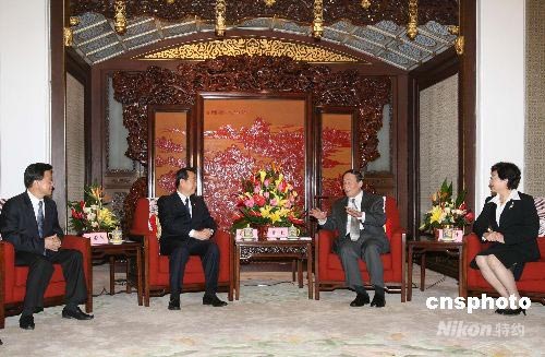 7月7日,中國(guó)國(guó)務(wù)院副總理王岐山在北京中南海紫光閣會(huì)見了由中國(guó)國(guó)務(wù)院僑務(wù)辦公室主任李海峰率領(lǐng)的“知名僑資企業(yè)家四川行”代表團(tuán)一行。中新社發(fā) 王瑤 攝
