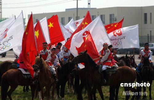 圖:呼和浩特民眾在馬背上為奧運(yùn)加油