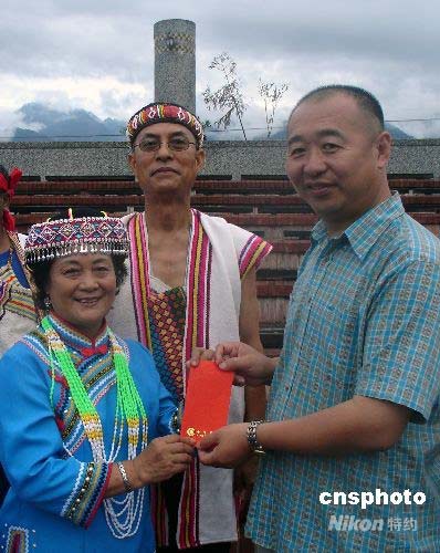 圖:大陸首發(fā)團(tuán)向臺灣少數(shù)民族同胞贈紅包